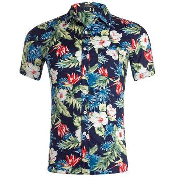 เสื้อฮาวายขายส่งลำลองแขนสั้นทรอปิคอลชายหาดปุ่มลงผ้าฝ้าย100% พิมพ์ลายผู้ชายสำหรับฤดูร้อนสไตล์อังกฤษ